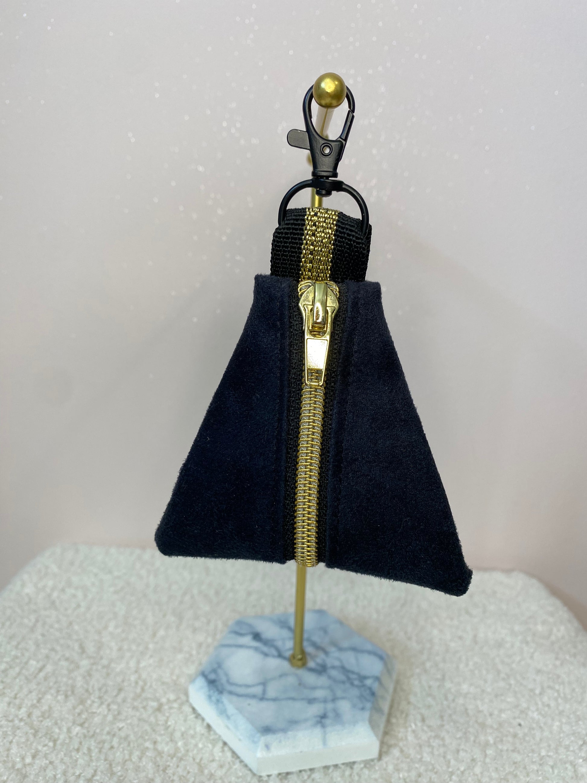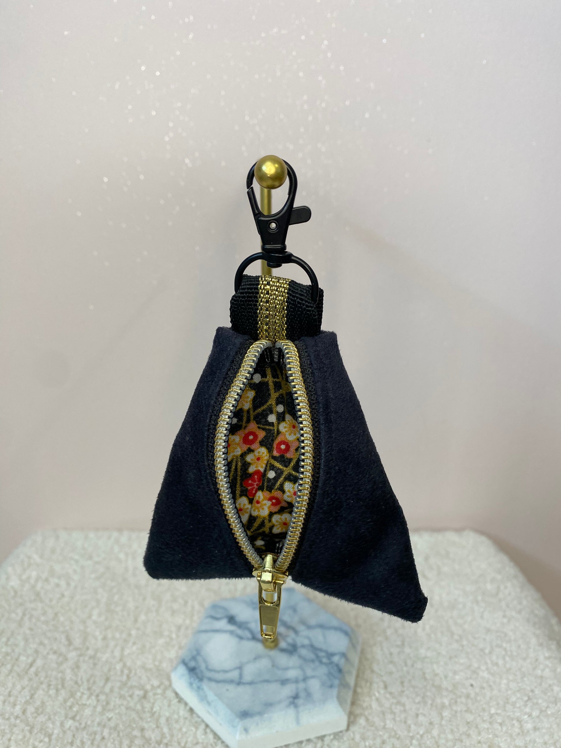 Matières : suédine noir / intérieur fleuri / mousqueton noir