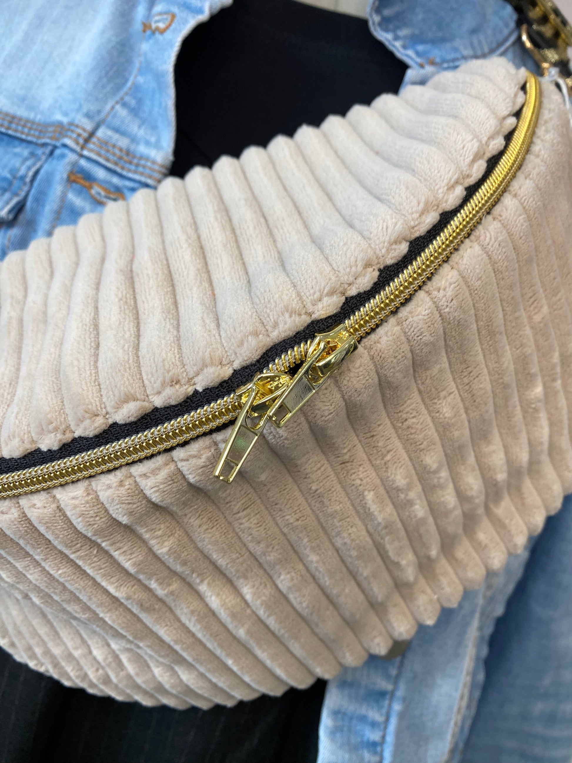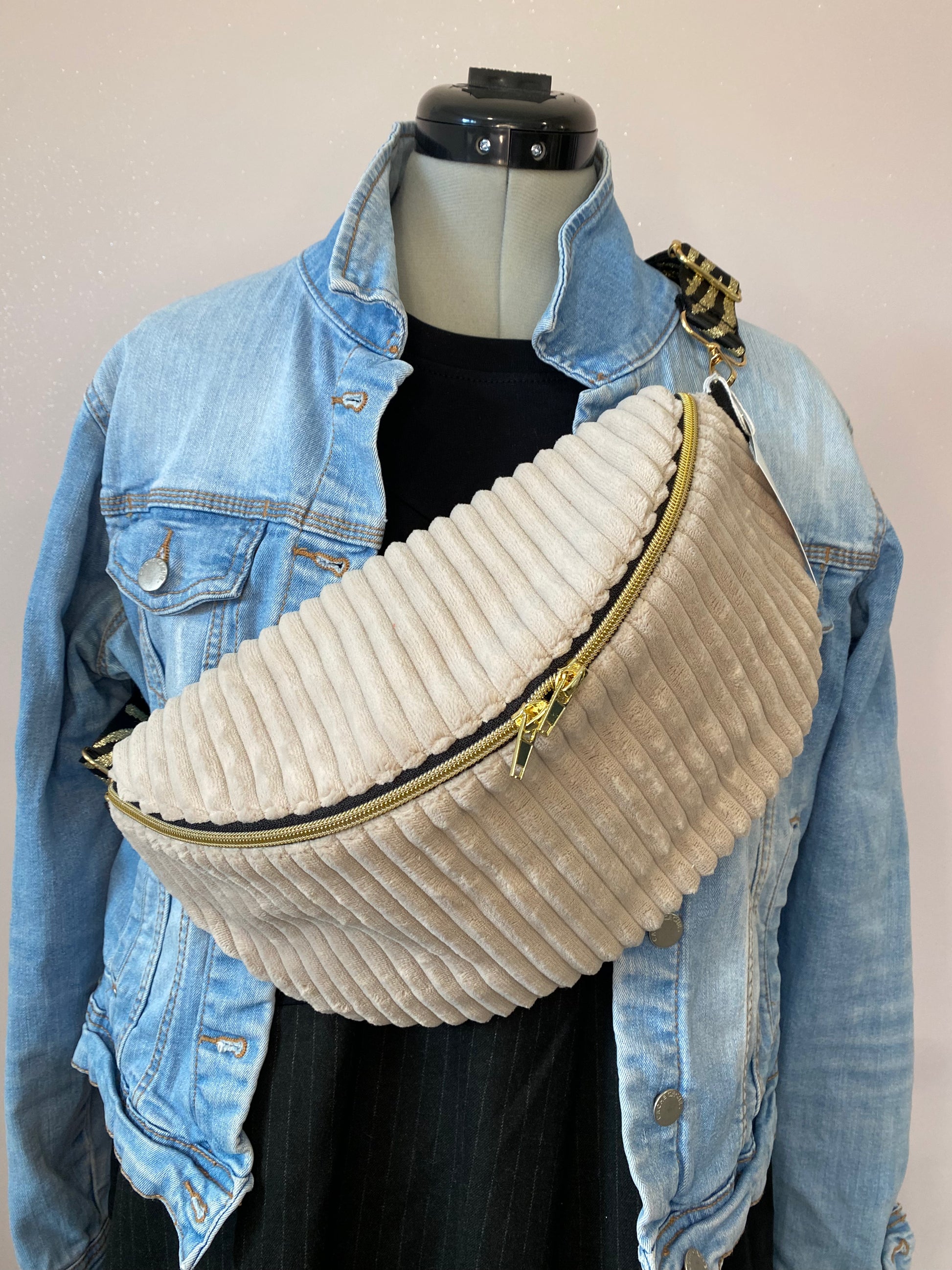 Matières : velours cotelé grosse maille beige / intérieur fleuri