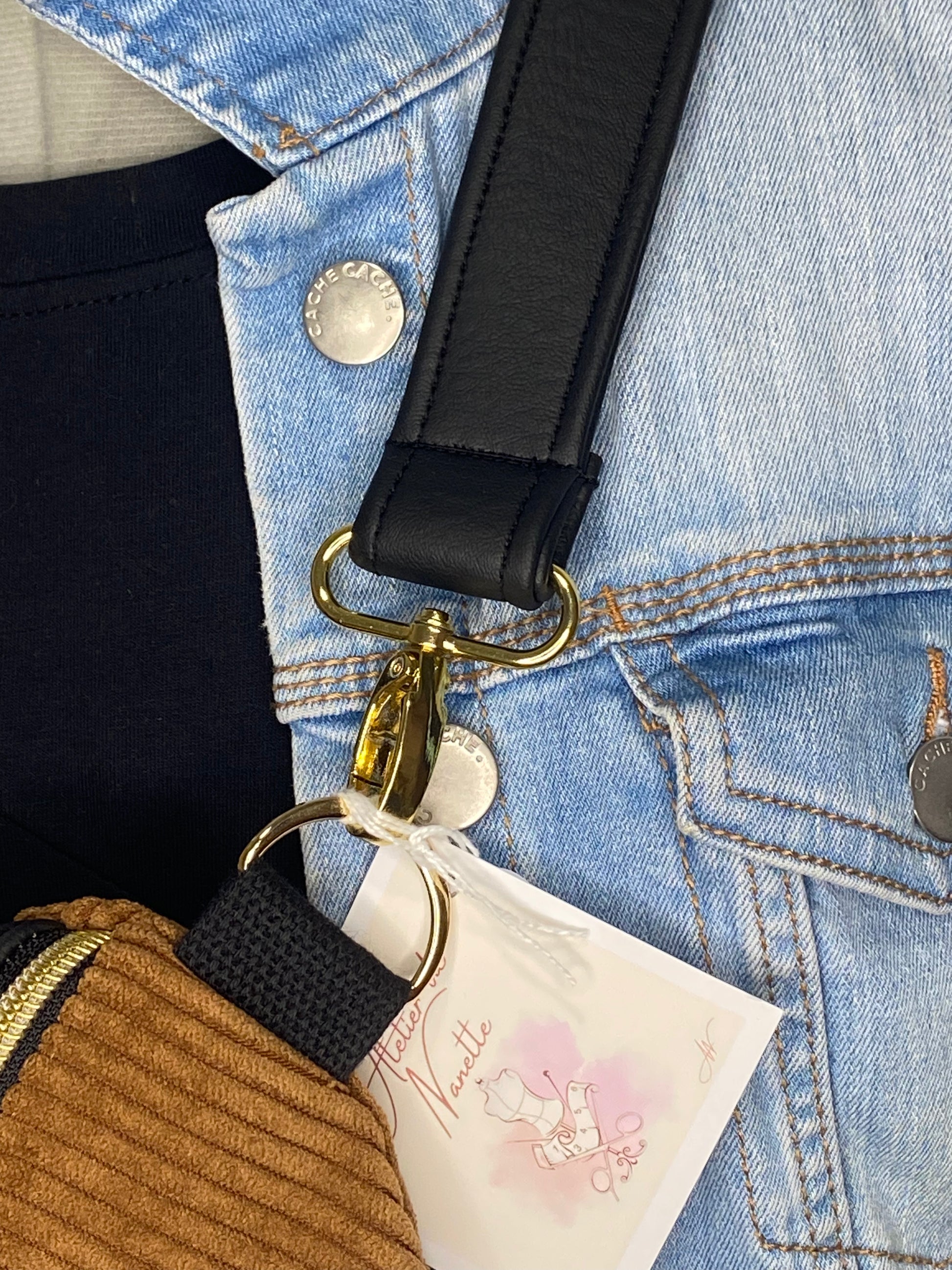 Matières : simili noir - velours côtelé marron / intérieur fleuri